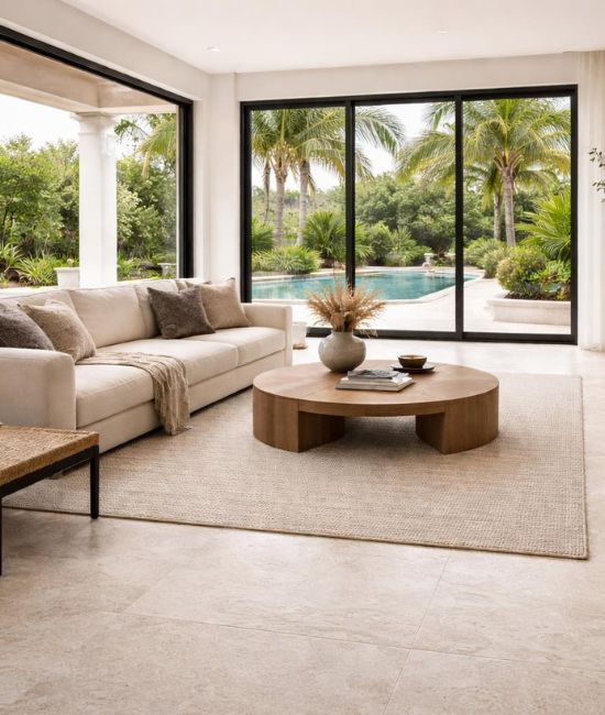 Travertine tile is Florida's most popular natural stone for pool decks, outdoor patios, and Mediterranean-style applications throughout Orlando, Naples, Miami, and coastal properties statewide. Our travertine collections include ivory (light beige) for bright contemporary Florida aesthetics, noce (medium brown) for traditional warmth, gold (honey tones) for rich character, and silver (gray) for modern coastal style.