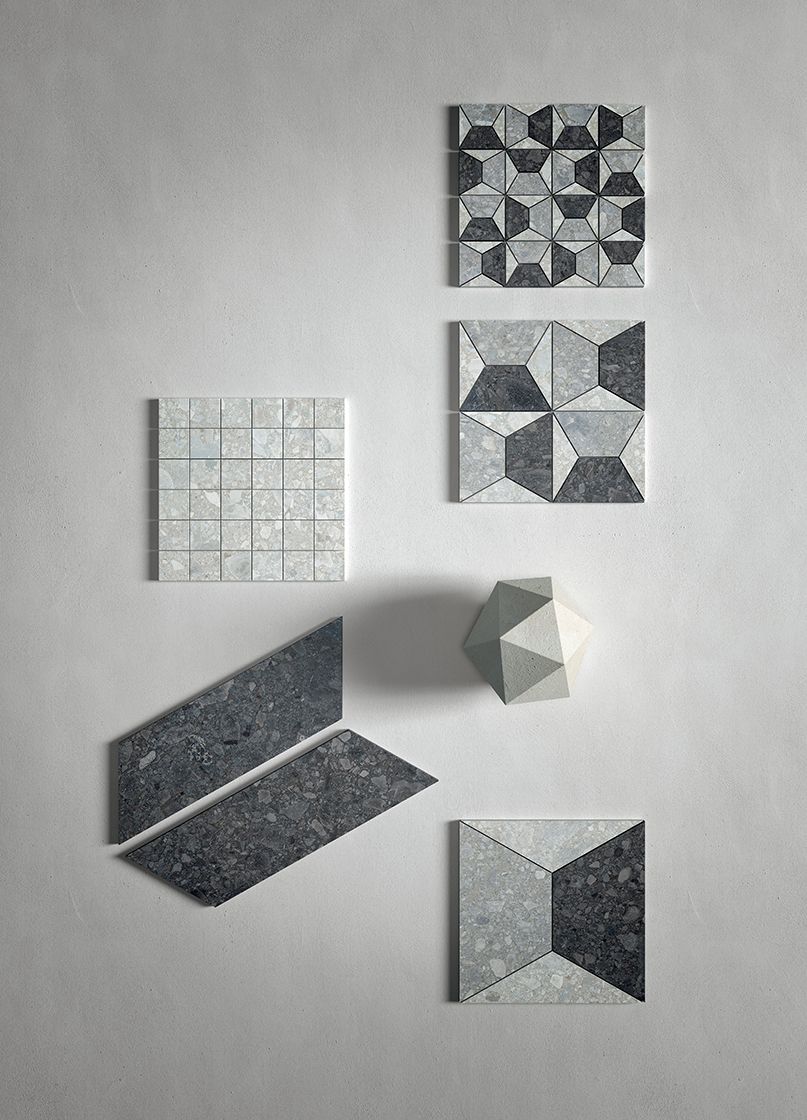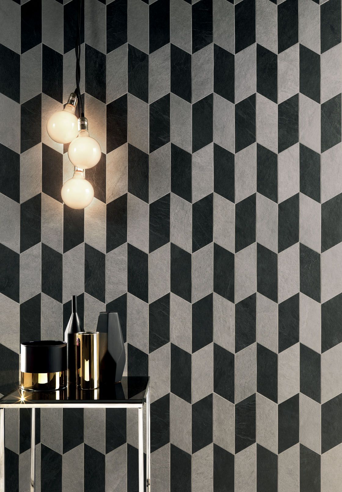 Handcrafted Italian mosaics, patterned inserts, feature borders, listelli strips, and decorative series tiles. Available in glass, porcelain, and natural stone bases used as accents, feature walls, and artistic installations..